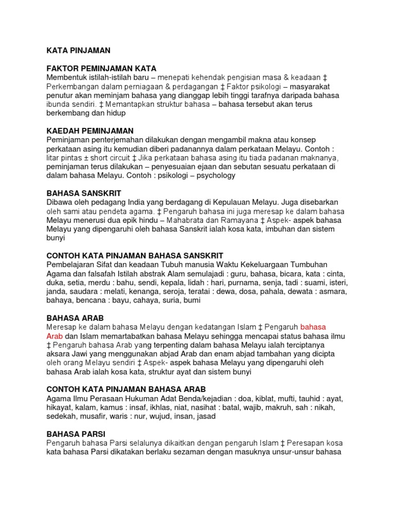 Terdapat tiga bahasa yang sangat besar pengaruhnya dalam proses peminjaman kosa kata kepada bahasa Melayu iaitu bahasa Sanskrit bahasa Arab dan bahasa Inggeris. 4peranan BI sebagai bahasa antarabangsa. Dalam situasi beginilah berlakunya peminjaman kata sama ada secara bulat-bulat atau secara penyesuaian.