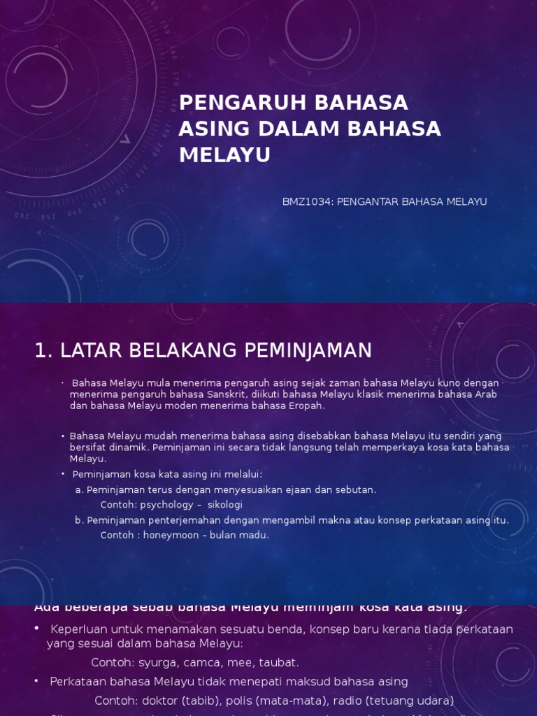 Kosa kata tersebut dapat diklasifikasikan berdasarkan. Peminjaman Kosa Kata Asing Dalam Bahasa Melayu. Faktor-faktor adanya peminjaman bahasa Sesetengah pengguna bahasa Melayu gemar menggunakan bahasa asing kerana beranggapan perkataan Melayu sudah lapuk dan tidak bergaya lagi.